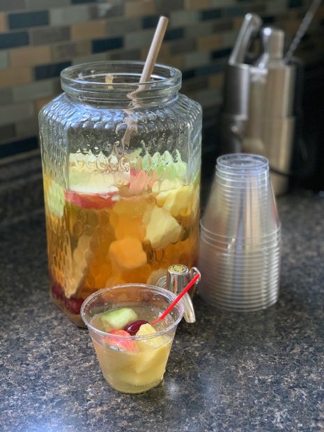 Red or White2:! ration of Remaining Bottle(s) of wineClub SodaFresh FruitsAdded Extras: Grey Good Vodka, St Germaine Elderflower Liquor or concentrate, Grapefruit/or/Pineapple Juice (white sangria), Grape/or/Pomegranate Juice (red) Pink/regular Lemonade Glass; rock, stemless wine, or reg wine glass
